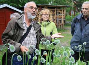 Mattias råd till trädgårdsodlare i Marielund: Undvik främmande arter som tar över den lokal floran. Han hade många exempel på så kallade ”invasiva arter”, arter som tar över och slår ut andra. Vresrosen är ett exempel. Om man har en främmande växt som riskerar att sprida sig så kan man efter blomning klippa bort fröställningarna och kasta i soporna. När vi ska köpa in sorter kan man tänka på att de klassiska färgvarianterna är som regel lättast att sköta. Det är en anledning att undvika vita löjtnantshjärtan, vita akleja etc – men de gör å andra sidan ingen skada.